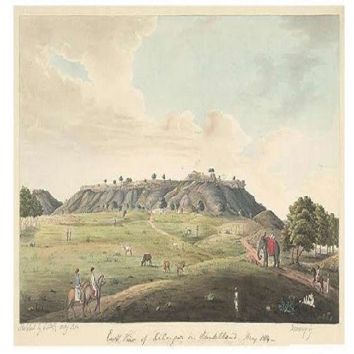 Painting of Kalinjar fort of 1814 (Source British Library Online Gallery_ Watercolour view of the fort at Kalinjar in Uttar Pradesh by Colin MacKenzie (1754- 1821) in May 1814. Inscribed on the